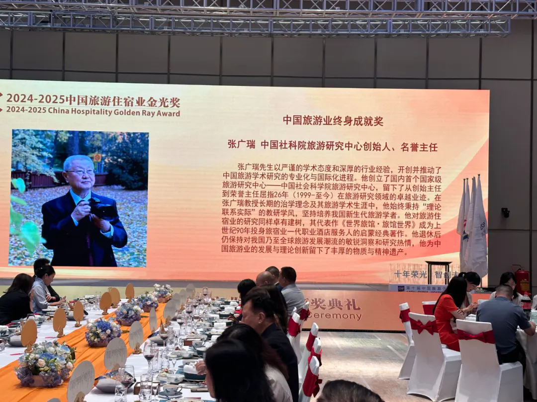 此前,我从中国旅游住宿业论坛大会媒体知晓本届“金光奖”评委会为本人颁发了2024-2025中国旅游业终身成就奖。昨天,又收到论坛秘书长给我寄发的获奖证书和奖章。得此殊荣,获此抬爱,荣幸之至。值此,特向两位,并通过你们,向全体评委会委员,致以衷心的感谢,并因未能亲自出席盛会当场致谢表示歉意,为错过了一次与诸位交流的机会感到遗憾。按照惯例,谨以下文作为本人的获奖感言。